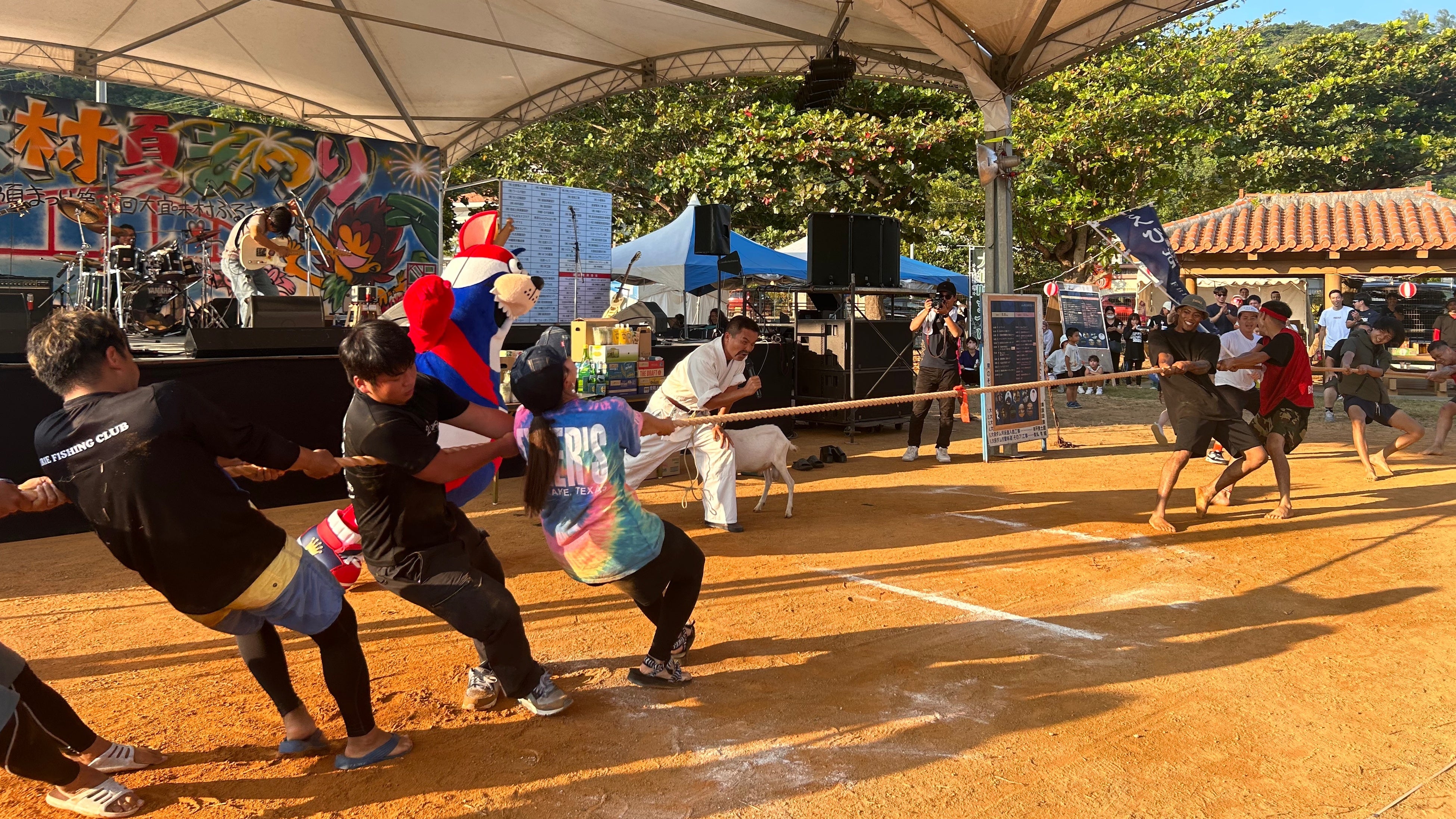 8月11日(日)は、大宜味村で行われた「第42回大宜味村夏まつり」に参加しました。お祭りで開催されたクイズ大会では、開催地の大宜味村とキングスにまつわる問題が出題され、大宜味村PRキャラクターの「ぶながや」とゴーディーがイベントを盛り上げました。綱引き大会決勝戦の応援にも参加し、多くの参加者と交流を深めました。