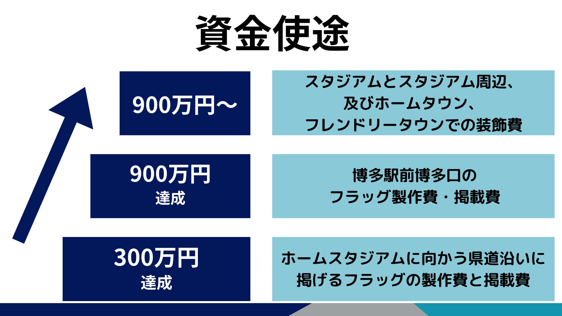 ベスト電器スタジアム周辺や博多駅前に掲げるフラッグ製作費・掲載費のための資金を本クラウドファンディングで調達予定です。