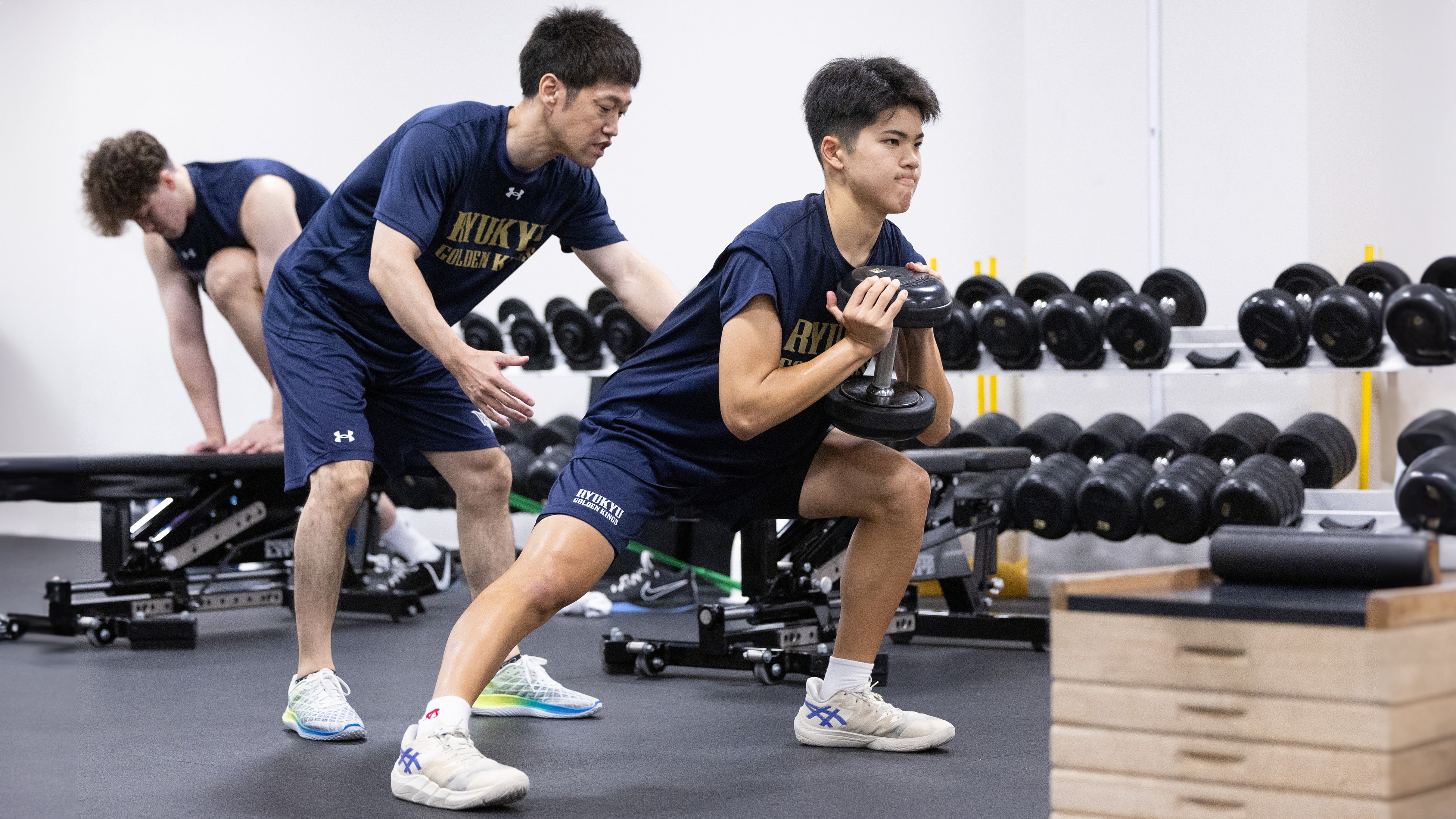 また、畝挟孝洋ストレングス&コンディショニングコーチの指導のもと、トップチームが実際に使用している器具でウエイトトレーニングを行い、より高いレベルでの戦いにも耐えることができる身体づくりを行いました。