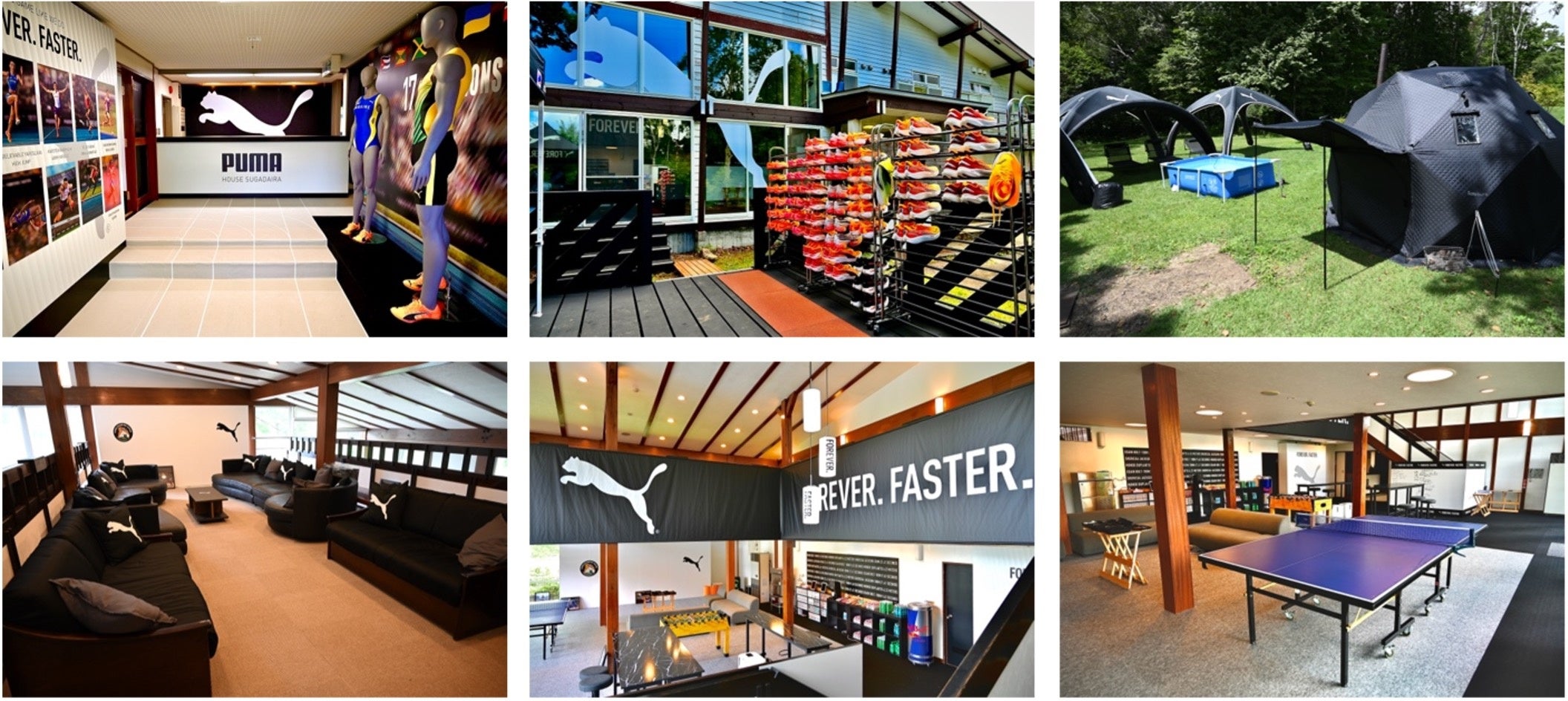 「PUMA RUNNING HOUSE SUGADAIRA」は、選手がくつろぐソファを設えるラウンジスペースをはじめ、水素吸入を体験できるカウンターバー、プーマとパートナーシップ契約を締結している「RAKULEASE(ラクリス)」のエレクトロストレッチが体験できるスポーツマッサージ、サウナ・水風呂、高酸素マシンなどを備え、どのサービスも無料で利用することができます。また、プーマブランドのテクノロジーを体験してもらうために、最新のランニングシューズを体験できるコーナーも提供します。