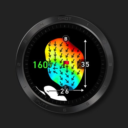 ■グリーンでの「スロープガイド」:ピンの手前・奥側の傾斜状況を表示