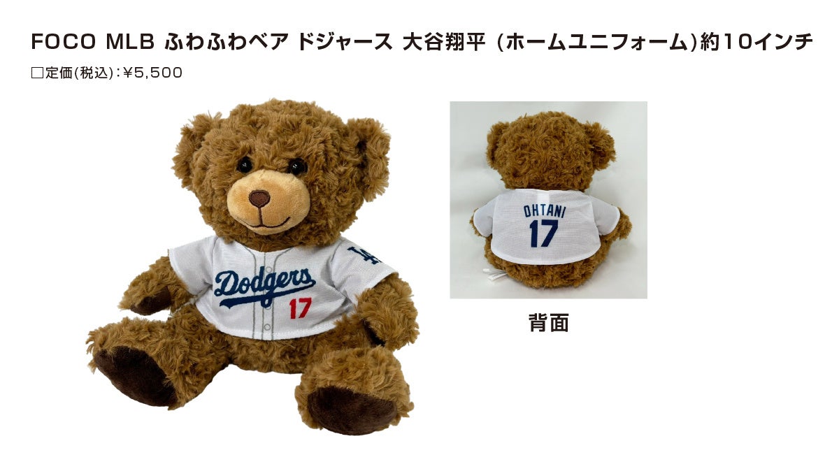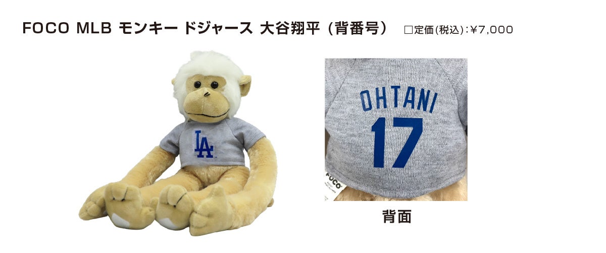 現在大好評販売中のFOCO社製のぬいぐるみに、大谷翔平選手背番号入り商品が仲間入り!!