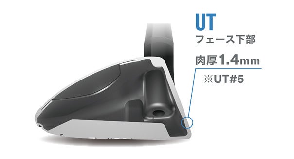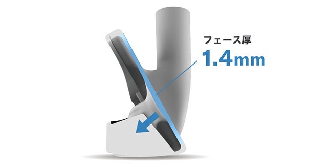 偏肉設計により、実際にボールが当たるフェース下部を薄肉化(1.4mm)しました。これにより、打点部分の反発性能が向上し高初速を実現しています。