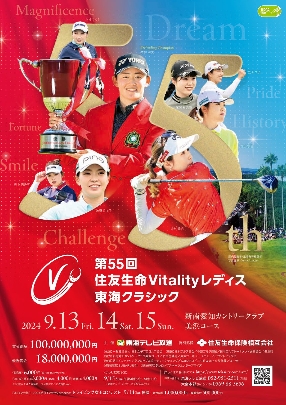 JLPGA ツアー「第 55 回住友生命 Vitalityレディス 東海クラシック」は、9 月 13 日(金) から 15 日(日)までの 3 日間、愛知県美浜町の新南愛知カントリークラブ美浜コースにて開催されますが、