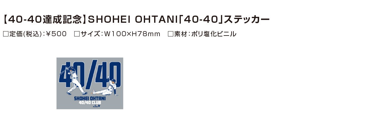 劇的サヨナラ満塁弾!!大谷翔平選手が史上最速で「40-40」(※1シーズン40盗塁、40本塁打)を達成したことを記念し、メモリアルグッズの販売を開始いたしました。