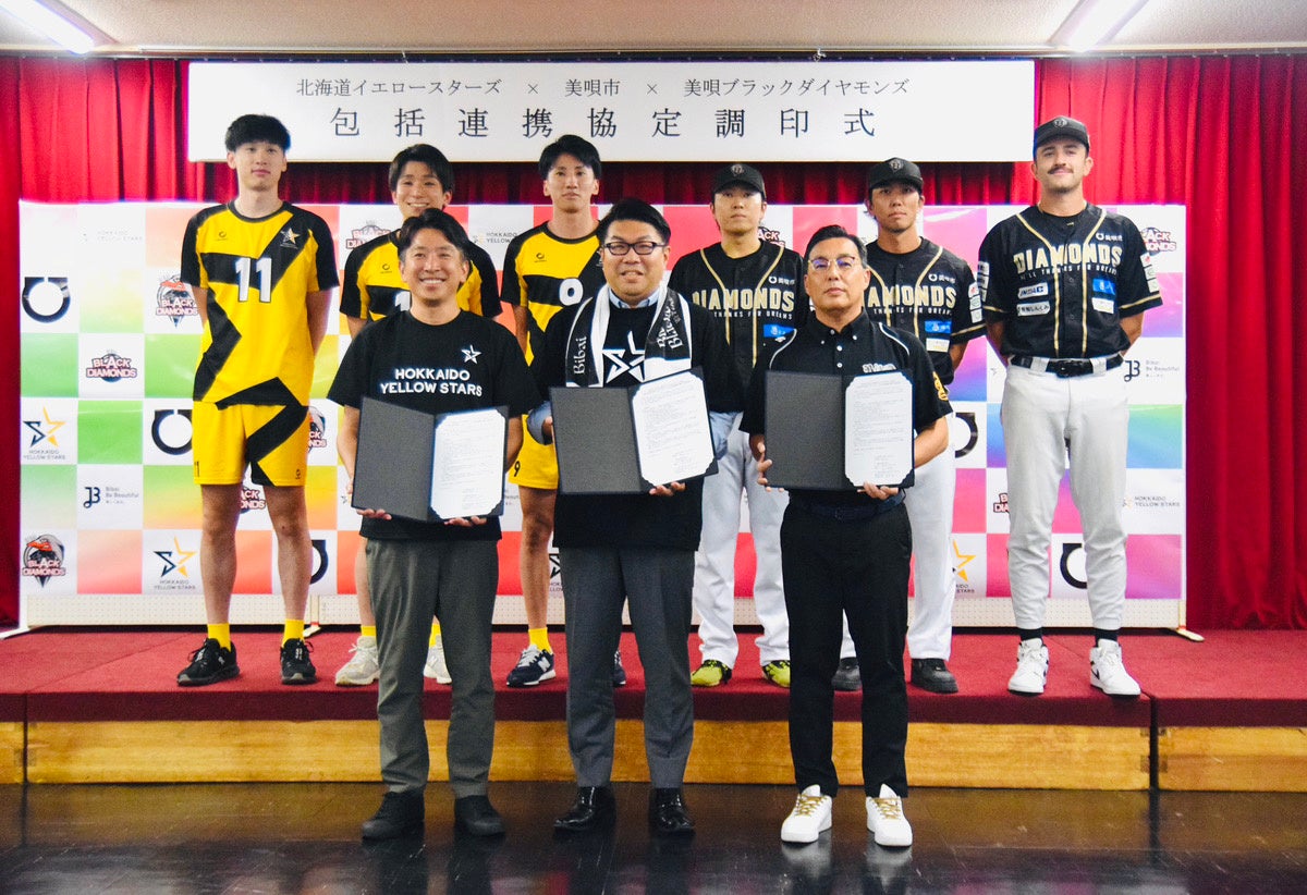 「美唄市が締結してきたこれまでの連携協定とは異なり、バレーボールチームのイエロースターズ、野球のブラックダイヤモンズ、そしてハブとなる市による三者で結ぶというところが斬新で、新たな価値を生むものだと感じています。それぞれ地域に密着したチームが、地域にあるスポーツ振興、観光振興など様々な課題を三者のリソースを集合することによって解決していこうというものです。美唄市というフィールドを使い、それぞれのチームが連携をもとにさらなる飛躍を遂げてほしいと願っています。市民はもとより美唄市、北海道の子どもたちにとって有意義なものにしていきたいと思います」