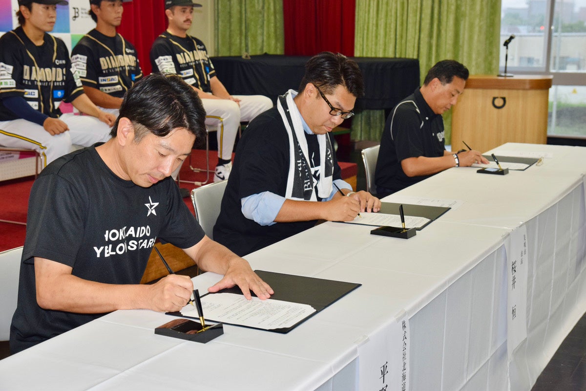 「我々にとって三者間協定の締結、他のスポーツとご一緒させていただくのは初めてのことで、どういう化学反応が起こるのか、とてもわくわく、期待感でいっぱいです。イエロースターズは女性ファンが多く、推し活的要素が強いチームです。ブラックダイヤモンズとコラボしたポスターをしないに張るなど、ここでしか見られないものがあると、我々のファンが足を運んで経済活動を行っていただけると思いますし、美唄市のことをより多くの方々に知っていただく機会の創出にもつなげられます。全てを自分たちで囲うのではなく、自分たちのリソース、ファンでありスポンサーなどをシェアしていくことも重要だと思っていまして、三者で相互に受け渡しながら課題を解決する世界観を築きたいと考えています。