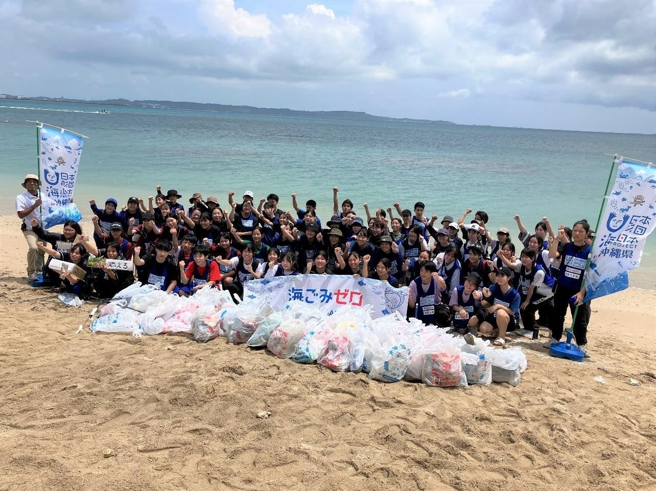 青い海と広い砂浜が特徴の中城モール裏ビーチ。マーメイドの石像がシンボルとして有名なこのビーチも台風接近での漂着ごみ、訪れた人が出す生活ごみでいっぱいでした。海に囲まれた沖縄県民は「海は県民の財産」と考えている人も多く、子どものころから海の大切さを学びます。そんな環境でも砂浜はもちろん、海岸に面する木々の間などに飲み食いしたような跡などがありました。スポGOMI甲子園に参加した皆さんはきっと本日の様子を周りに伝え、自分ができるアクションを起こしてくれるはずです。沢山の人が訪れるこの中城モール裏ビーチからその輪が広まっていくことを実感したイベントになりました。