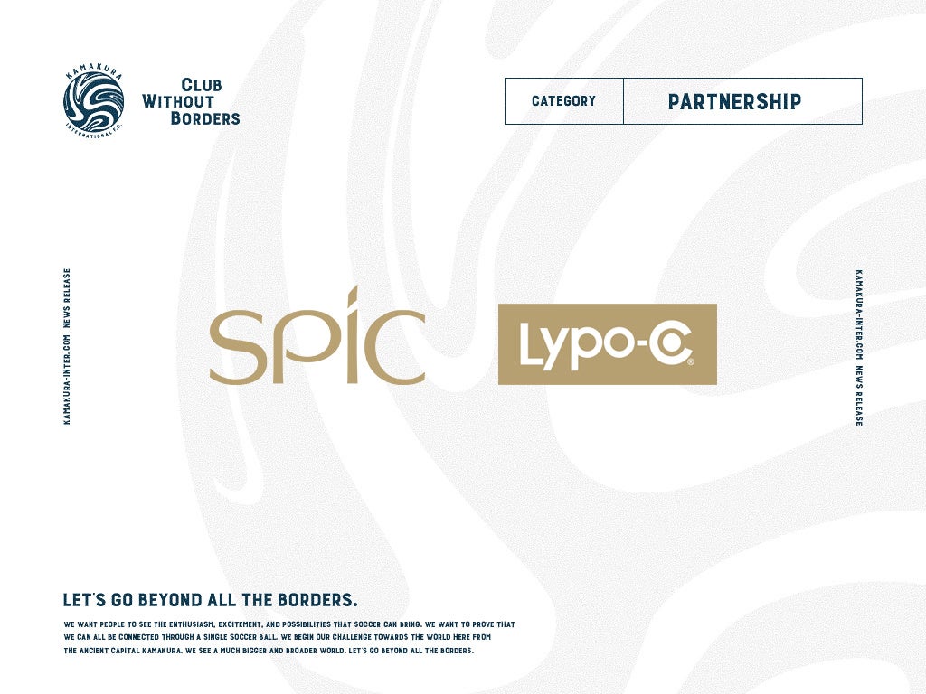 本パートナーシップ契約によりトップチーム選手が着用するユニフォーム鎖骨部分に株式会社スピック及び同社が開発・販売するLypo-Cのロゴを掲出いたします。