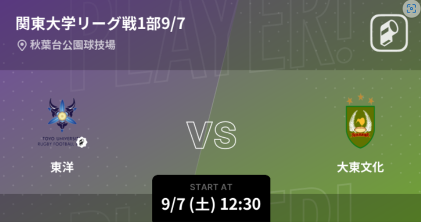 9/7(土)12時30分~ 東洋大学VS大東文化大学