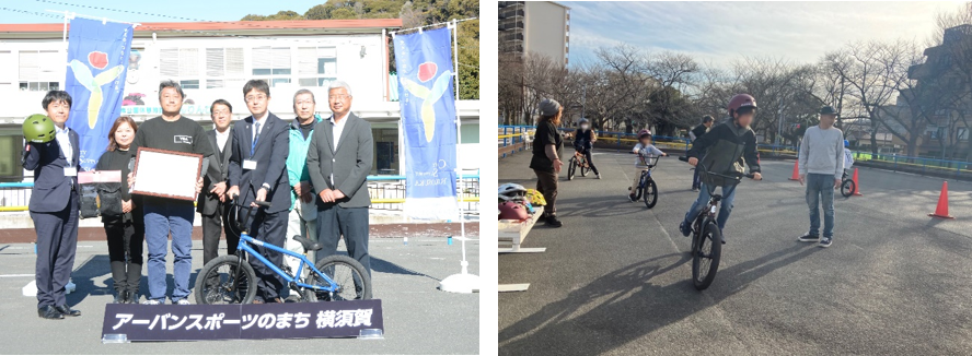 日頃からBMXの普及活動にご協力をいただいている横須賀BMX協会様から、BMXをより多くの人に体験してもらうことを目的として、本市にBMXをご寄贈いただきました。現在、根岸公園(交通公園)にて「BMXチャレンジタイム」として、指定管理者協力のもと、月2回BMXを体験できる機会を提供しており、多くの子供たちにBMXを体験していただいています。
