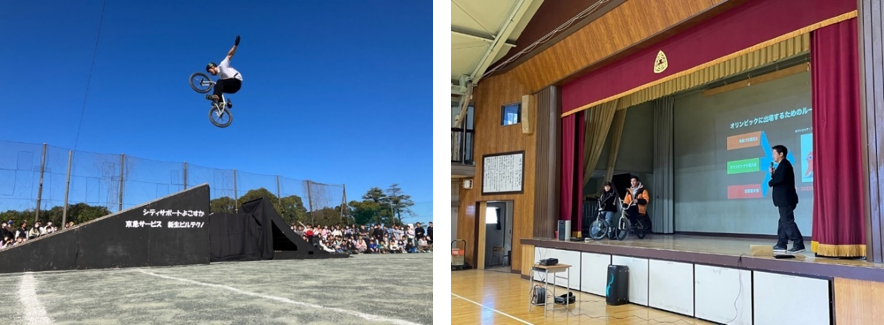 JFBFと連携して、市内小学校を訪問し、本市出身のトップライダーによる講演会やデモンストレーションを実施してきました。本事業は多くの学校からお申し込みをいただく大人気の事業として定着しており、多くの児童にBMXの魅力や夢・希望を与えてきました。