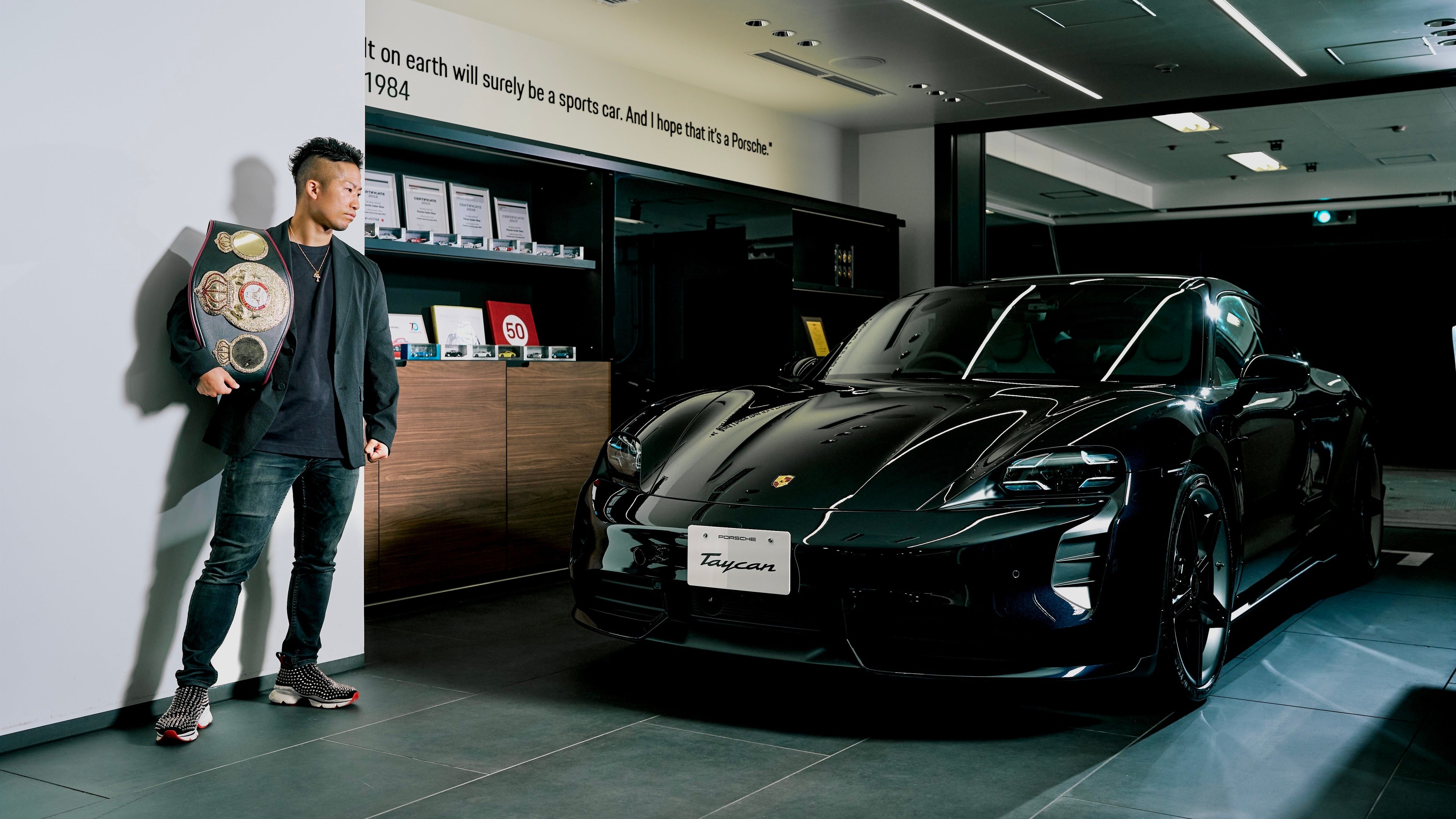 “今回スポンサー契約をいただけたことは本当に凄いことだなと感謝しています。ポルシェの実車を前にすると、こんなにカッコ良かったんだ!というのが率直な感想です。エンジンパワーを極限まで活かすために、強大なブレーキ制動力を持つというポルシェのスタイルは、ディフェンスを徹底強化した上でオフェンスを作るという、自身のボクシング流儀にも通じるところを感じますね。”