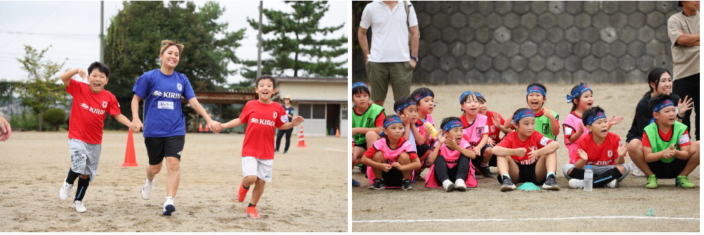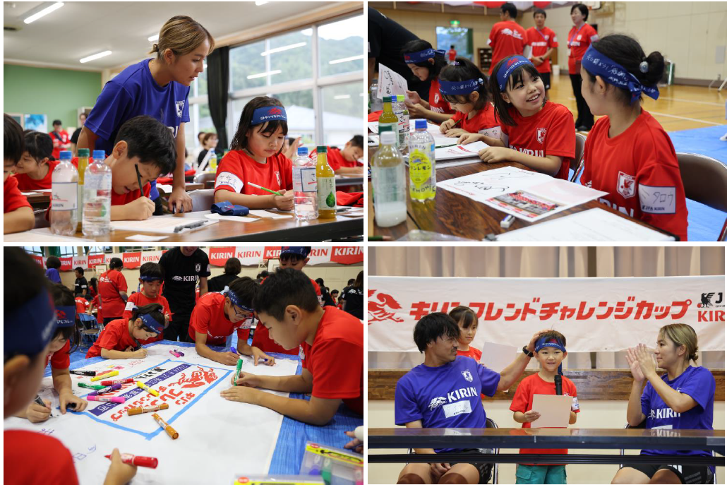 さらに今回は元サッカー日本代表の松井大輔さん、元サッカー日本女子代表の岩渕真奈さんもゲストとして登場。子どもたちと一緒にサッカーを通じた交流プログラムをはじめ、ゲストの体験談から友達や仲間の大切さを学び、心を開いて語り合う時間や、参加者同士で交流の思い出を形に残す製作の時間を共有しました。今後もJFAとキリンは、サッカーを通じて、人と人の新たなつながりを創出するとともに、たくさんの笑顔をつくり日本中を元気にしていきます。