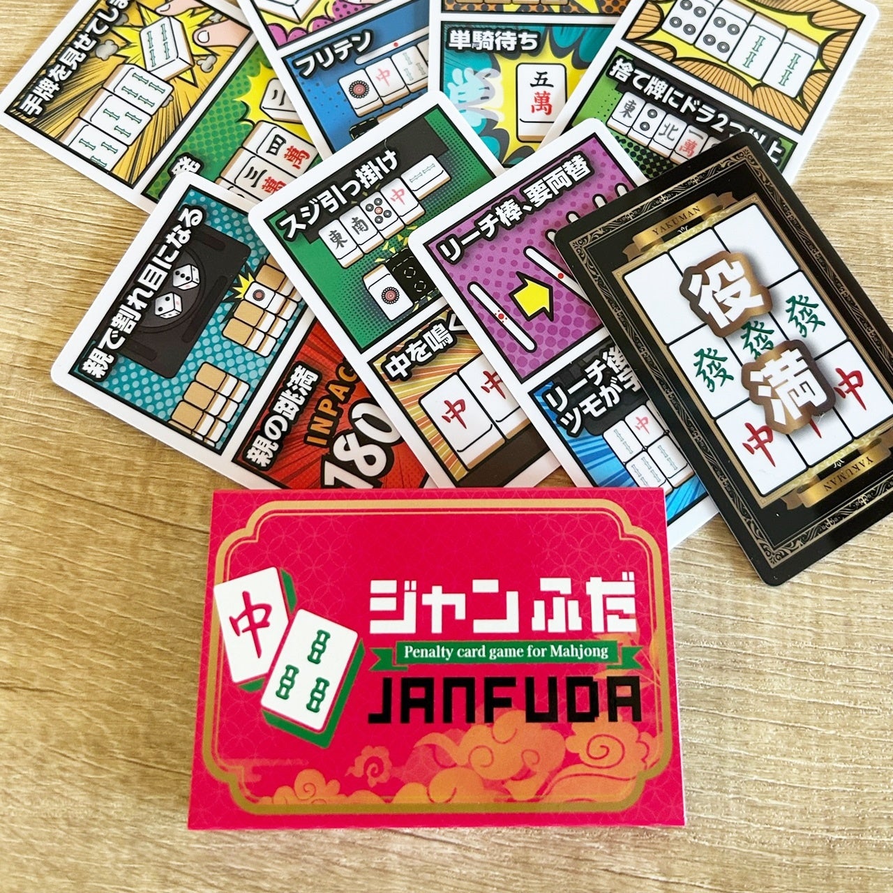 「ジャンふだ」は、麻雀に興じている最中、カードに描かれている内容と同じことをした人にそのカードを渡し、最終的に一番多くのカードを持っていた人がペナルティを受ける、至ってシンプルな設計のカードゲームです。