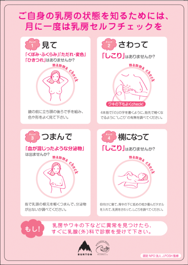 Burtonは、主に若い世代への乳がんに関する適正な知識の提供と、乳がんの予防・早期発見に繋がる啓発