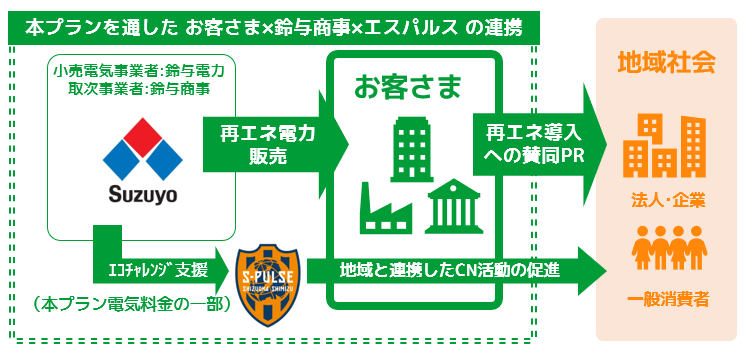 また当社は、本プランの電気料金の一部(電力使用量1kWhあたり0.25円)を、地域と連携したカーボンニュートラル活動(エスパルス エコチャレンジ)への支援金として、エスパルスに還元することとしております。