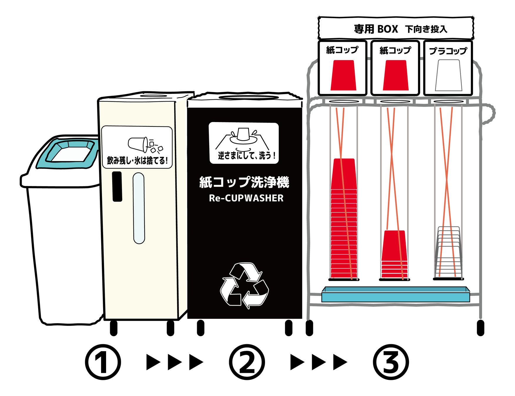 これまでのドリンク用紙コップの洗浄回収に加えて、ドリンク用プラスチックカップについても洗浄回収を実施します。