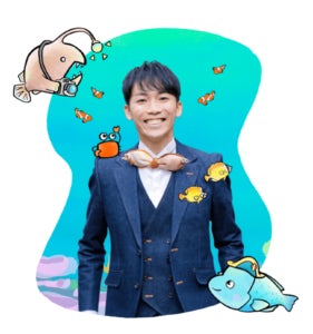 ”子どもがさかなを好きになれば海は綺麗になる”をテーマに、さかなの生態や海の大切さを”オモロく”伝えることで、子どもの「やさしい想像力」を育てる活動をしています。