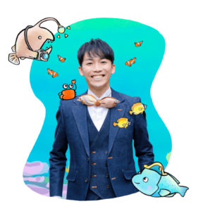 ”子どもがさかなを好きになれば海は綺麗になる”をテーマに、さかなの生態や海の大切さを”オモロく”伝えることで、子どもの「やさしい想像力」を育てる活動をしています。