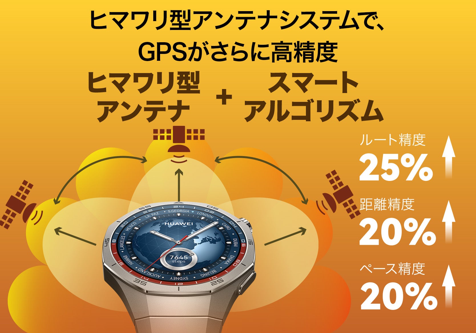 ウォッチに搭載されたヒマワリ型アンテナとインテリジェントなアルゴリズムにより、スポーツ中でも、手首のウォッチがどのような位置や向きにあっても、太陽を向くヒマワリのように、常に衛星の方向を自動で認識し、信号を最適な状態に調整します。それにより、前モデルと比較して、『HUAWEI WATCH GT 5 Pro』はGPSの精度を約20%以上、向上させています。ゴルフやランニングなど、各種スポーツモニタリングにおいて、より正確に自分の位置やルートを把握し、運動能力を測定するのに役立ちます。