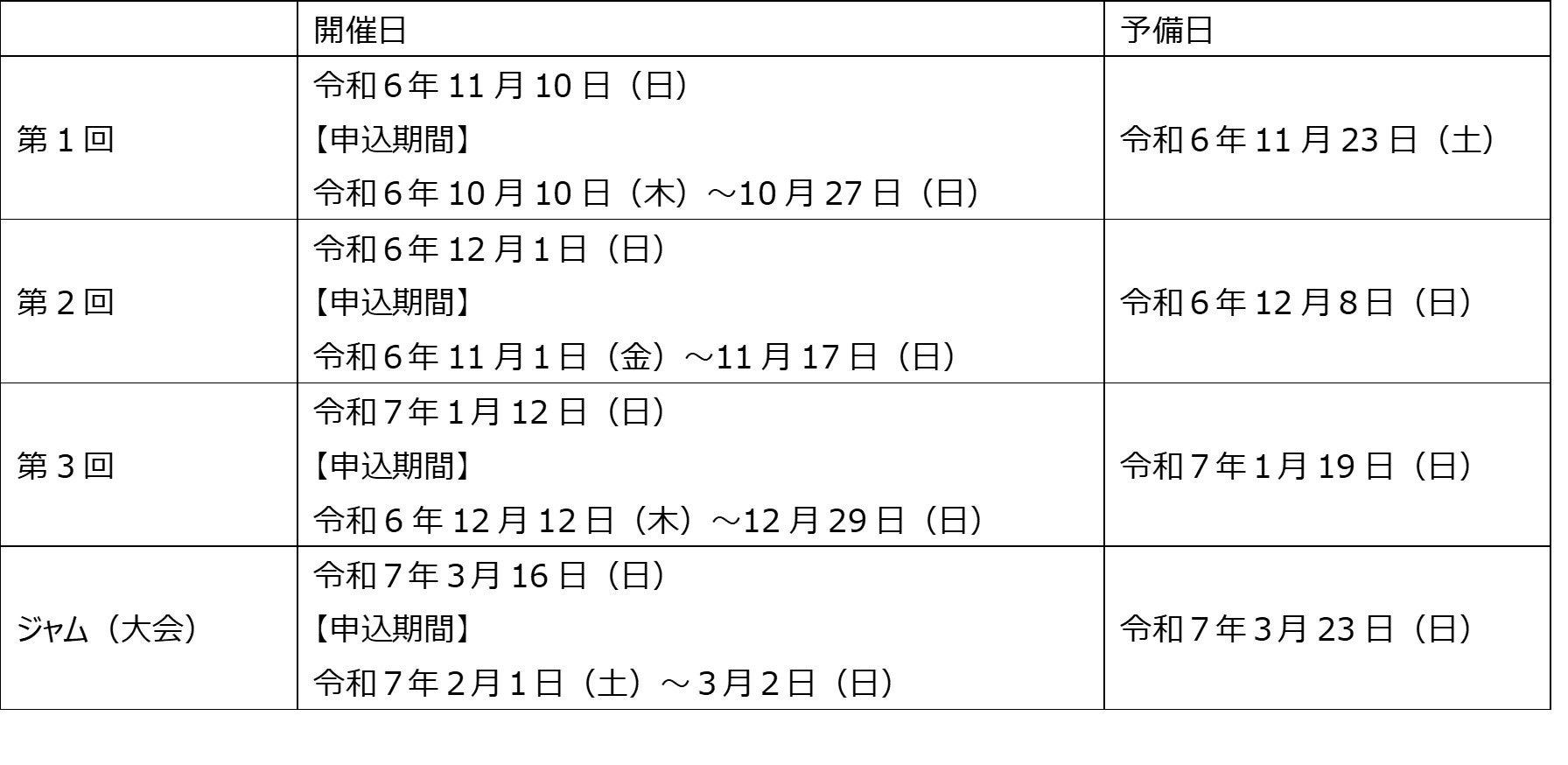 ※雨天その他の事由により開催日に開催できない場合は予備日に延期し、予備日も開催できない場合は中止となります。
