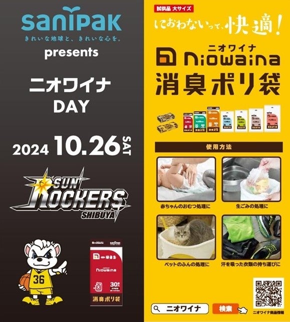 サンロッカーズ渋谷は、2024年10月26日(土)の2024₋25シーズン 第5節 京都ハンナリーズ戦について、日本サニパック株式会社ご協力のもと、協賛試合を開催することをお知らせいたします。