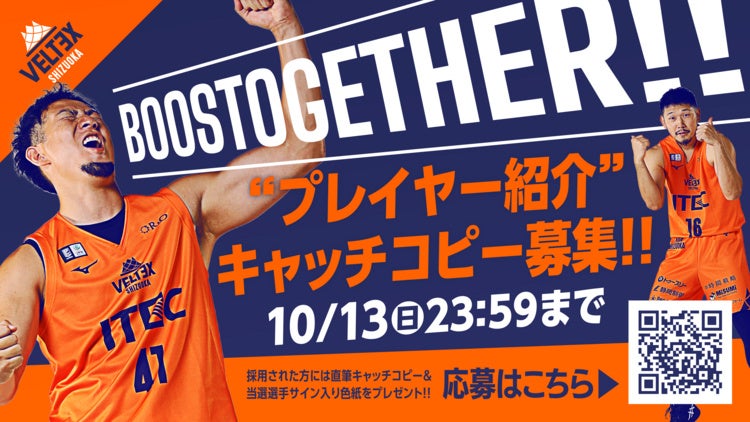 今シーズン森高大ヘッドコーチのもと、新生ベルテックス静岡がスタートし、初めてホームゲームへ来られる方にもクラブのことはもちろん、コートで熱く戦う選手たちをより多くの方へ知ってもらうべく、選手を紹介するキャッチコピーを募集します!