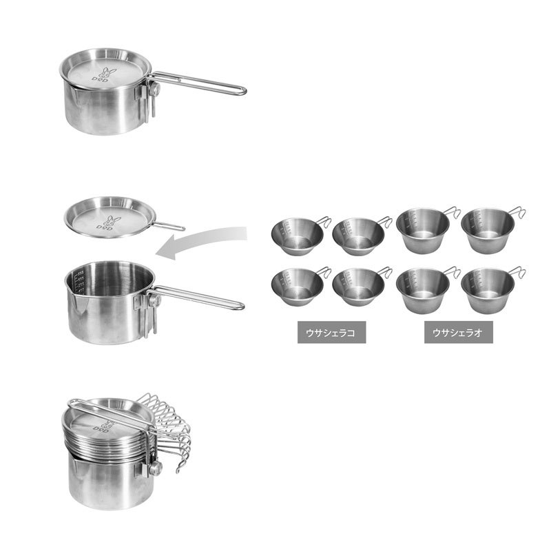 DODではさらに収納効率を高めるべく、好評発売中のシェラカップ「ウサシェラオ」や「ウサシェラコ」が中にぴったり納まる設計の本製品を今回開発しました。
