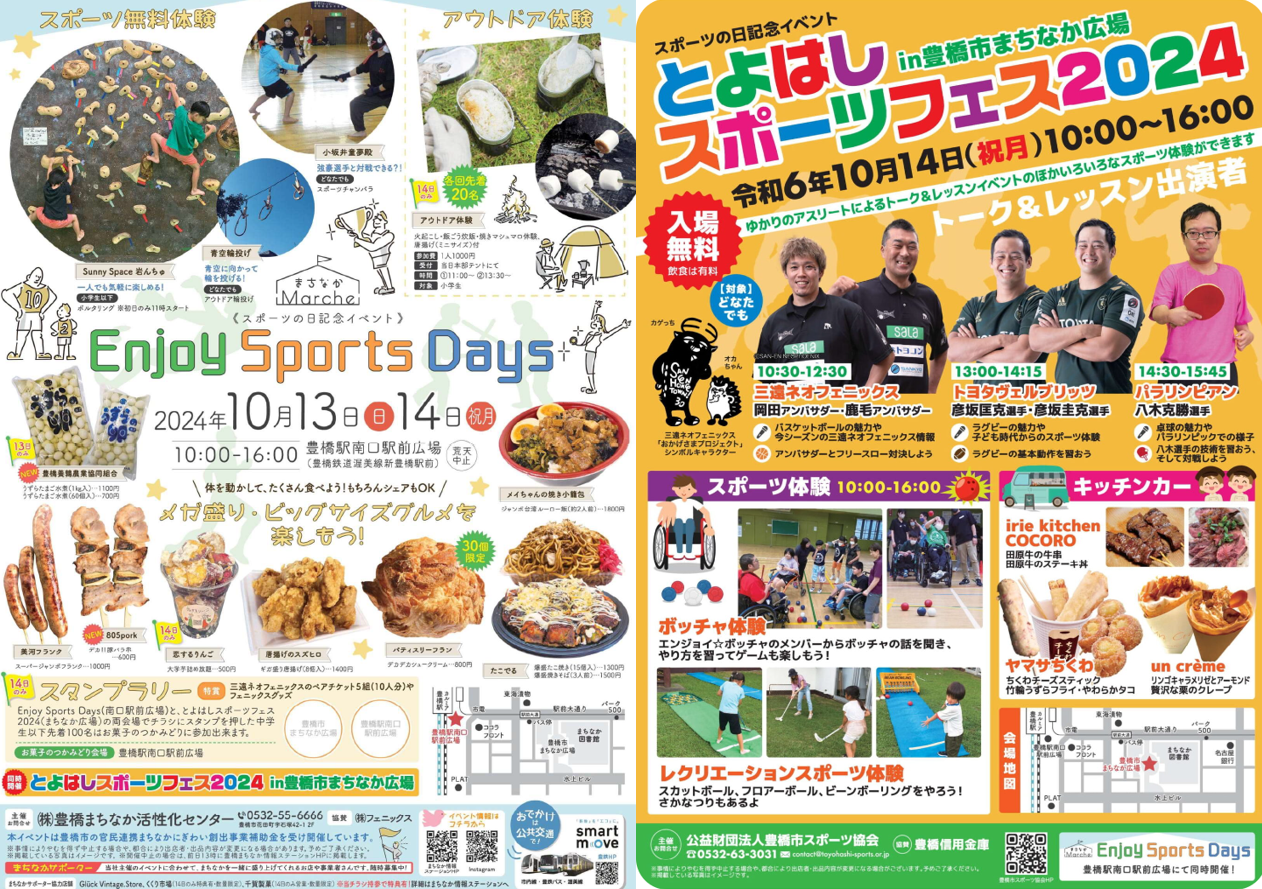 スポーツの日記念イベント「まちなかマルシェ Enjoy Sports Days」&「とよはしスポーツフェス2024」について、詳しくはHPをご覧ください。