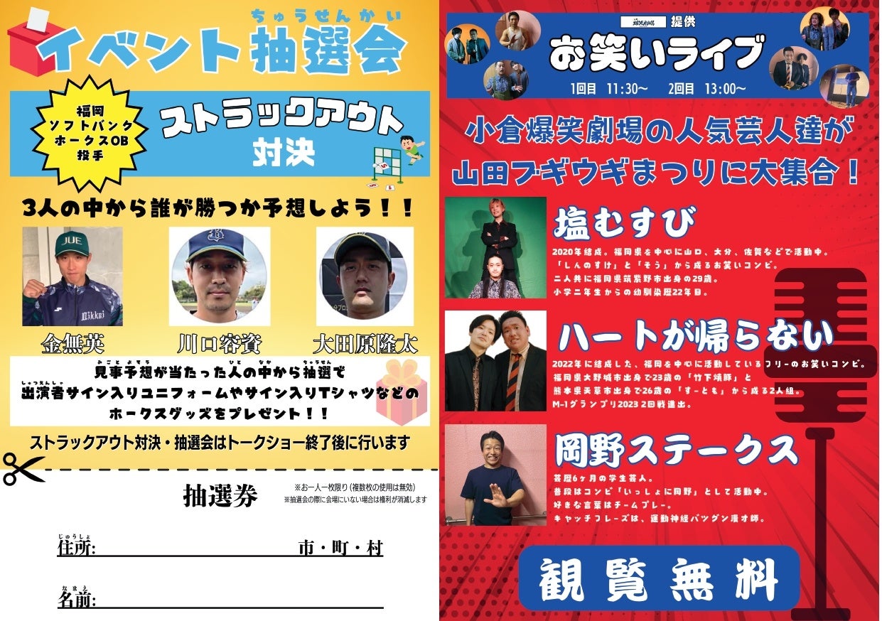 今回の山田ブギウギ祭りでは、嘉麻市バーニングヒーローズ様主催で以下のイベントも開催されます。