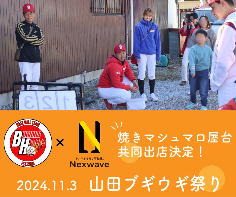 ネクスウェイブ株式会社(本社:福岡県福岡市、代表:木下晃一)は、2024年11月3日に福岡県嘉麻市上山田で開催される「第4回 山田ブギウギ祭り」に出店することが決定しましたのでお知らせいたします。今回の出店は、嘉麻市を拠点に活動する社会人硬式野球クラブチーム「嘉麻市バーニングヒーローズ」様との共同出店となります。