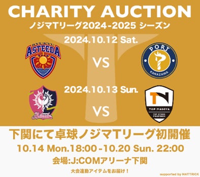 Tリーグでは、下関市での初の試合開催を記念しまして、選手の協力の下、スポーツオークション「HATTRICK」(運営:バリュエンスジャパン株式会社)にて、Tリーグ公式チャリティーオークションを開催します。