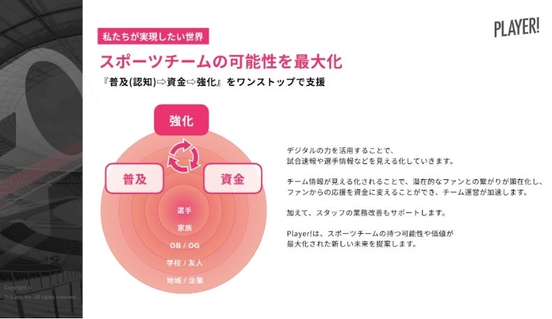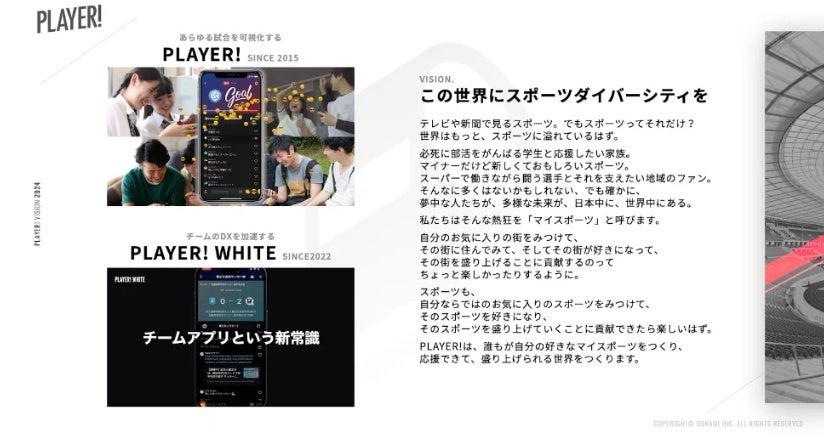 ▶︎事業内容:スポーツコミュニティアプリ「Player!」および「Player! WHITE」の開発・運営、スポーツ情報インフラの開発・運営