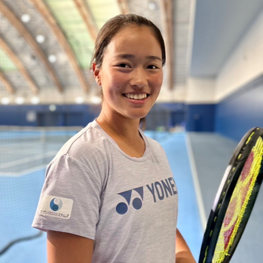 2006年生まれ。粘り強いプレーを軸に、高い身体能力から繰り出される力強いストロークとサービスが特徴。グランドスラムとロサンゼルスオリンピック出場を目標に「強く愛される選手」を目指す。