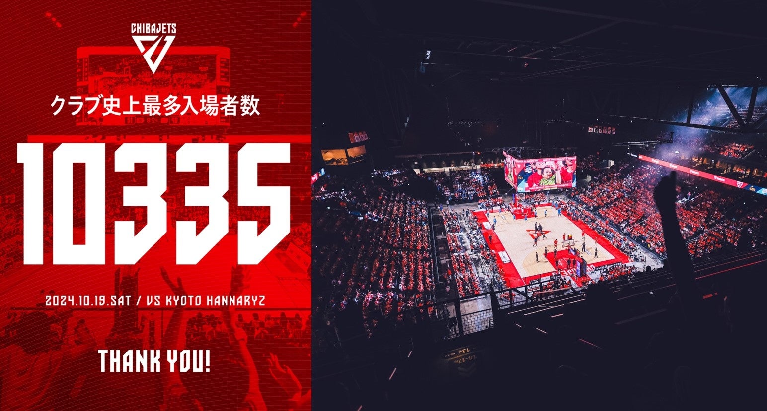 千葉ジェッツは10月19日(土)に南船橋エリアに誕生した「ららアリーナTOKYO-BAY」にて、りそなグループ B.LEAGUE 2024-25 SEASON 第 3 節 千葉ジェッツ VS 京都ハンナリーズを開催し、【10335人】を動員しクラブ史上最多動員数を更新いたしました。