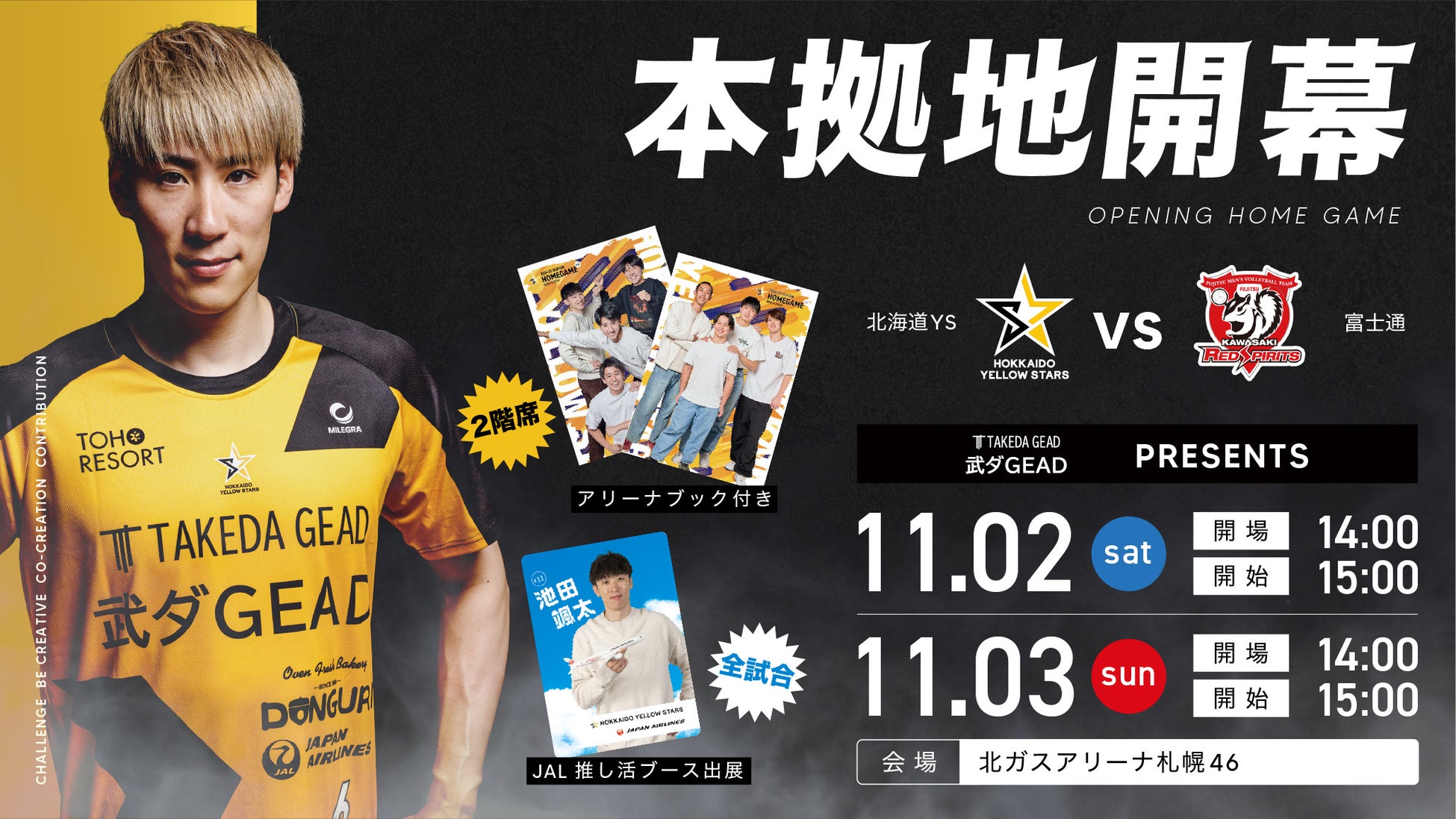 先日の2024年9月24日(火)に北海道イエロースターズの親会社となった武ダGEAD株式会社が、11月2日および3日のホーム開幕節の冠スポンサーとなることが決定いたしました。