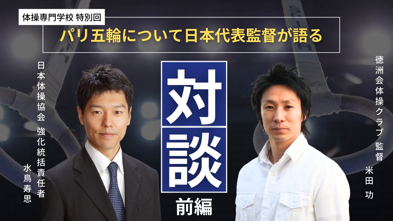 体操専門学校にて、パリ日本代表チームを金メダルに導いた日本代表監督・水鳥寿思さんと、徳洲会体操クラブ・米田功監督との対談動画が公開されました。