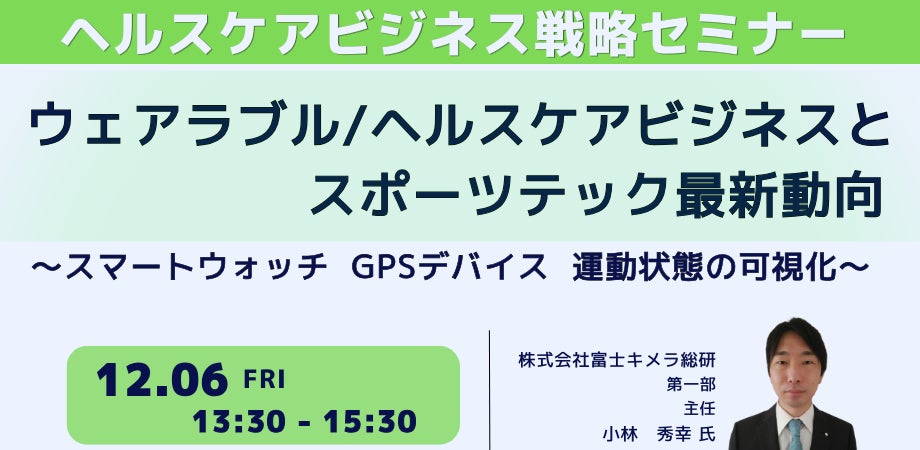 JPI(日本計画研究所)は、株式会社富士キメラ総研 第一部 主任 小林 秀幸 氏を招聘し、ウェアラブル/ヘルスケアビジネスとスポーツテック最新動向について詳説いただくセミナーを開催します。