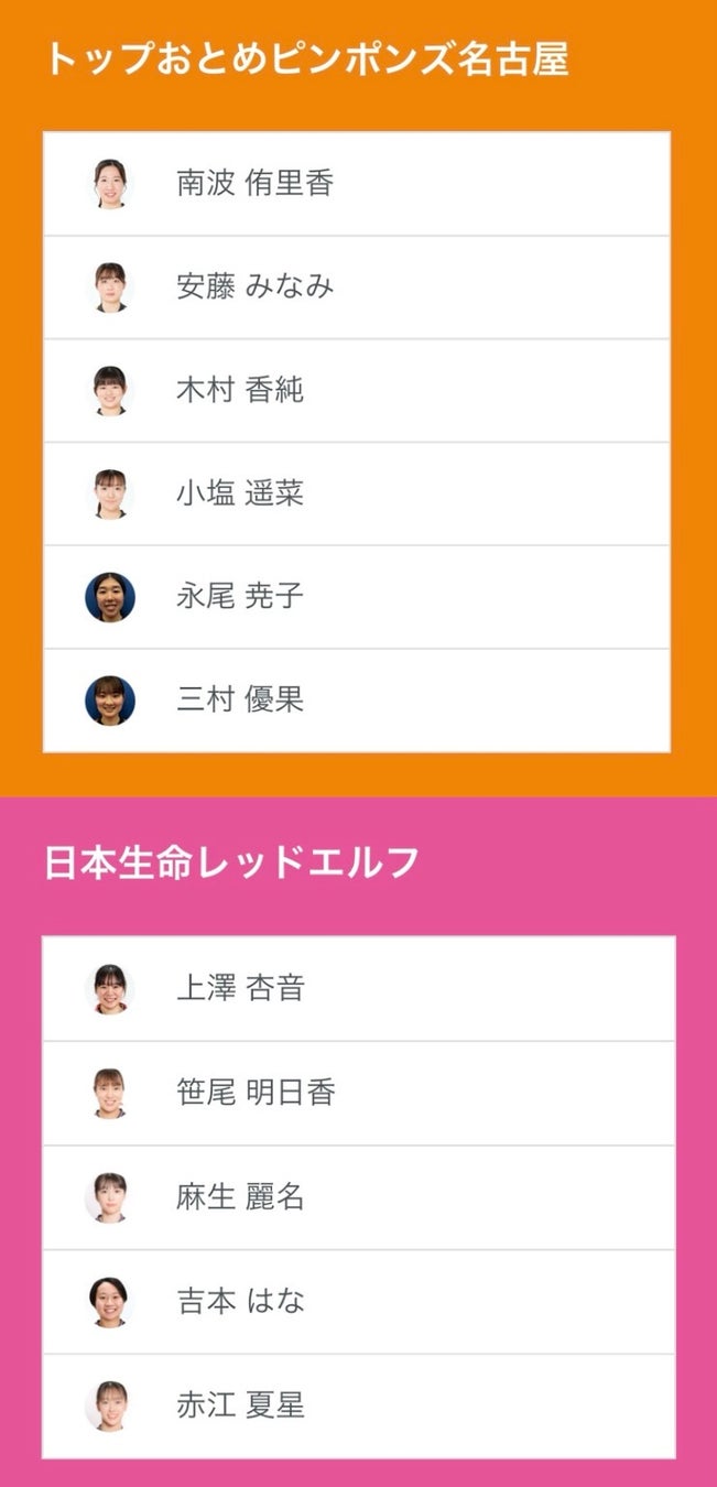 ノジマリーグ 2024-2025シーズン公式戦 11月17日開催 トップおとめピンポンズ名古屋 vs 日本生命レッドエルフ ベンチ入りメンバーを発表いたします。