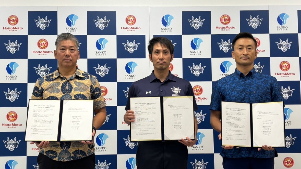 この度、琉球ゴールデンキングスは、学校法人三幸学園、株式会社ブレンズと協定を締結し、キングスU18選手の食育・育成強化に取り組むこととなりました。