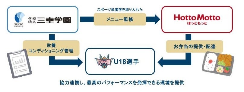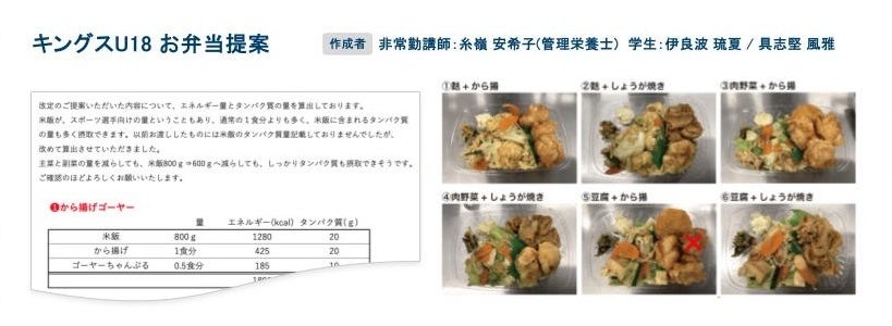 本取り組みでは、三幸学園の栄養トレーナーコースの教員および学生が監修した栄養バランスの取れたメニューをもとに、株式会社ブレンズが作成したオリジナルのお弁当をキングスU18の選手たちに提供されます。