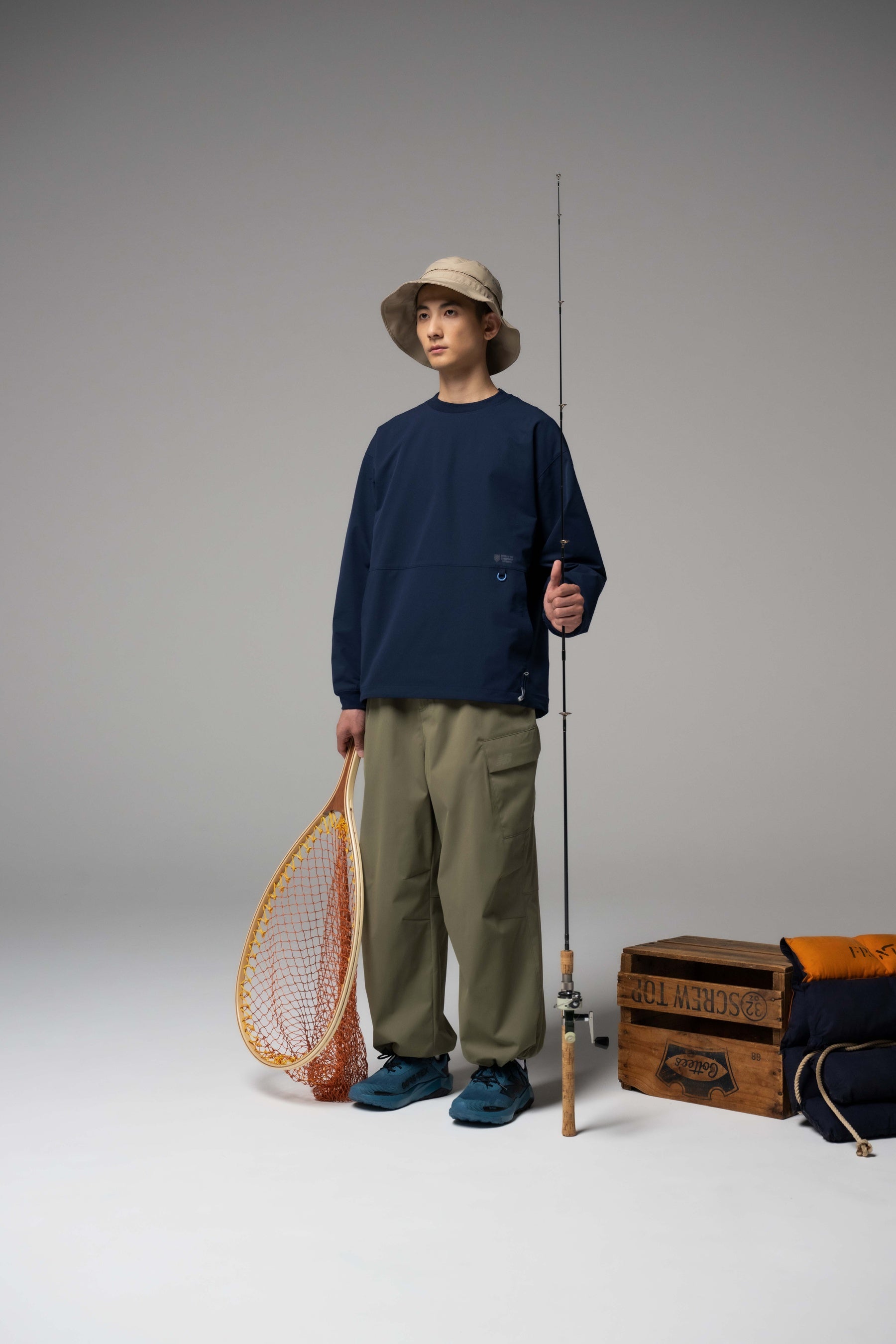 Tシャツ以上、スウェット未満のミドルウェイトのオリジナル開発素材。ちょうどいいライトウェイトのスウェットプルオーバーです。NBDRYで吸汗速乾に優れオールシーズン快適。ドルマンスリーブや裾が絞れるデザインがポイント。