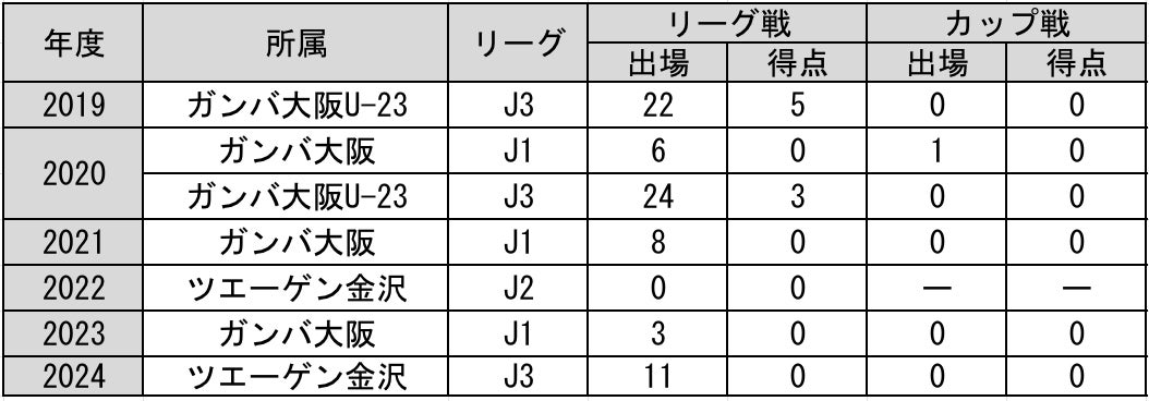 ガンバ大阪ジュニアユース – ガンバ大阪ユース – ガンバ大阪 – ツエーゲン金沢(育成型期限付き) – ガンバ大阪