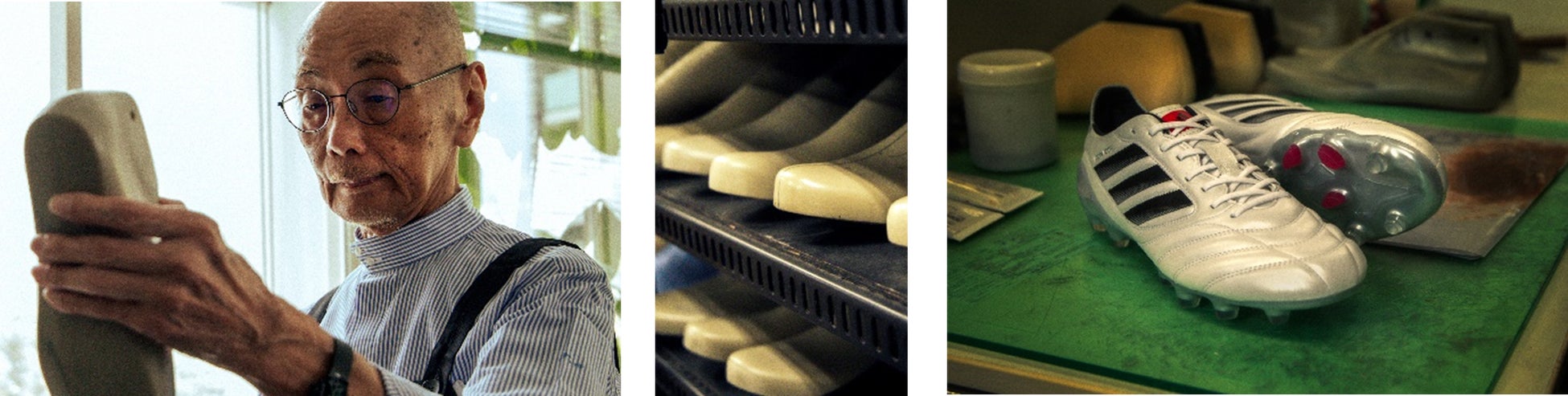 アディダスと日本の匠 大森敏明氏のコラボレーションによって現代の日本のフットボールプレーヤーに向けて開発された足型(ラスト)。足の形状を忠実に再現し、360°のフィット感、素足感覚を追求。