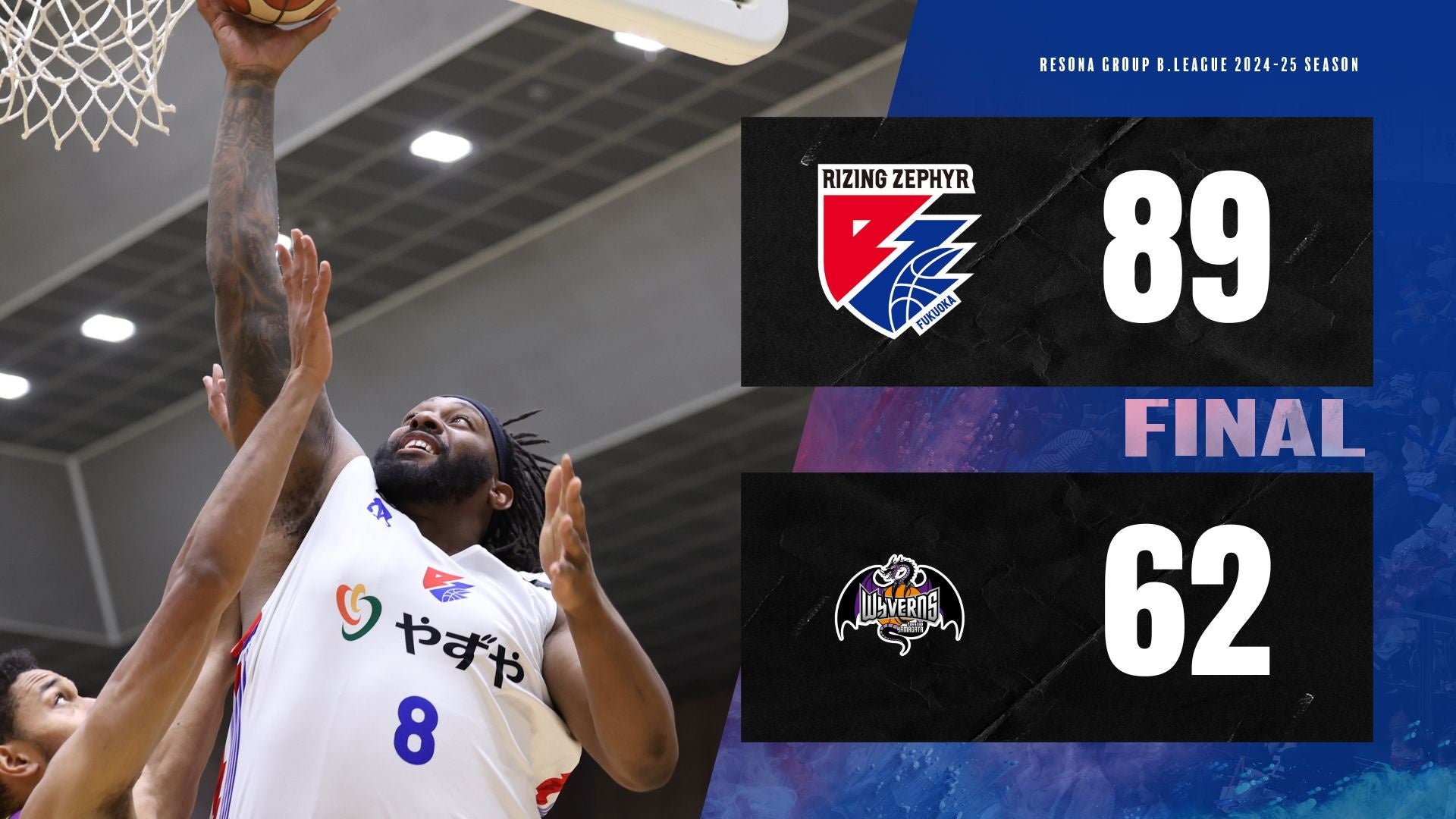 2024年12月7日(土)に開催されました、りそなグループB.LEAGUE 2024-25シーズン第11節【山形ワイヴァンズvs.ライジングゼファーフクオカ】の結果は、 “山形62-89福岡” 福岡の勝利となりましたことを、お知らせいたします。