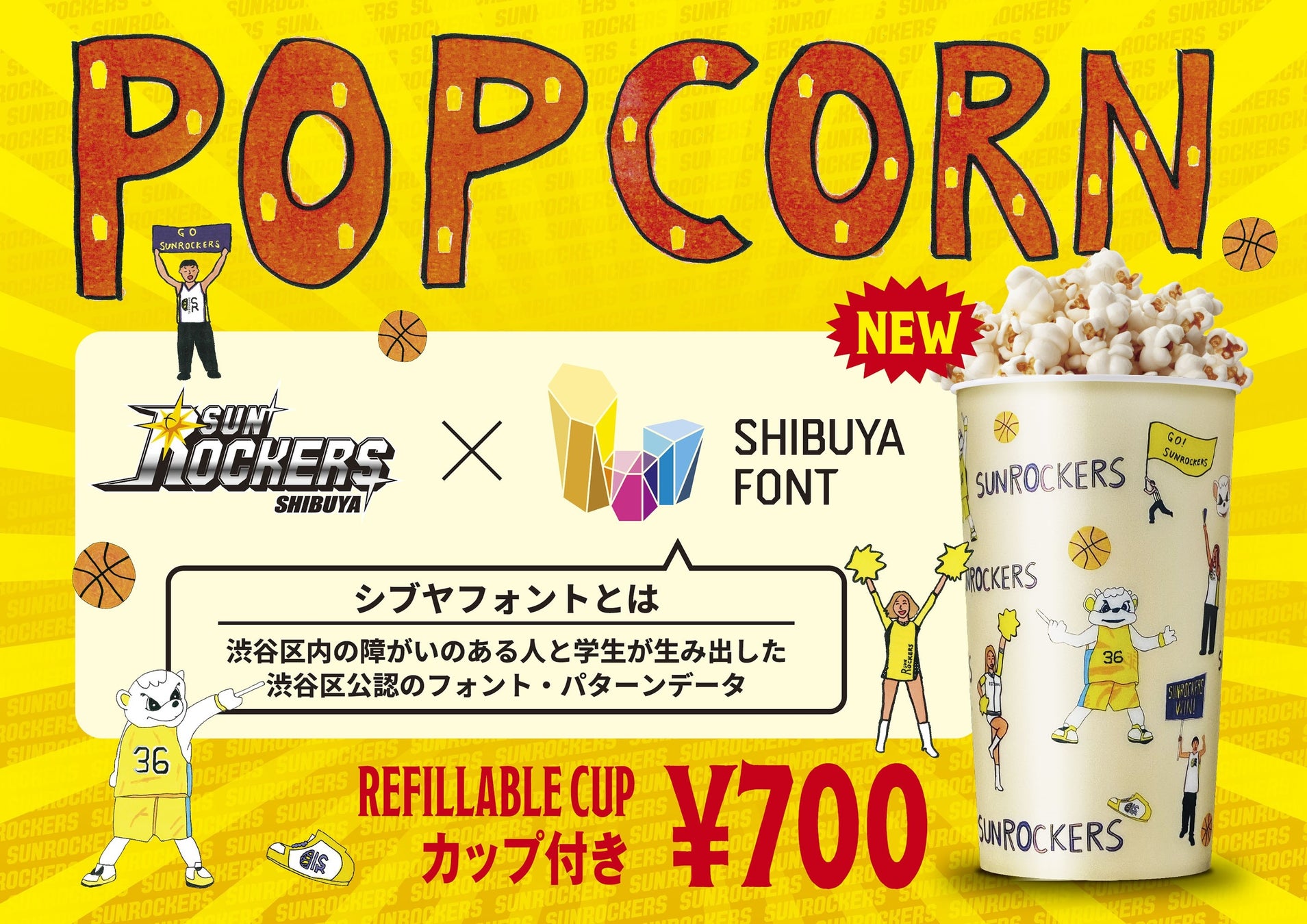 このたび、サンロッカーズ渋谷は一般社団法人シブヤフォントとのコラボレーション企画としてオリジナルのポップコーンカップをサンロッカーズ渋谷のホームゲーム・2025年1月11日(土)シーホース三河戦よりサンロッカーズスタンドにて販売いたします。