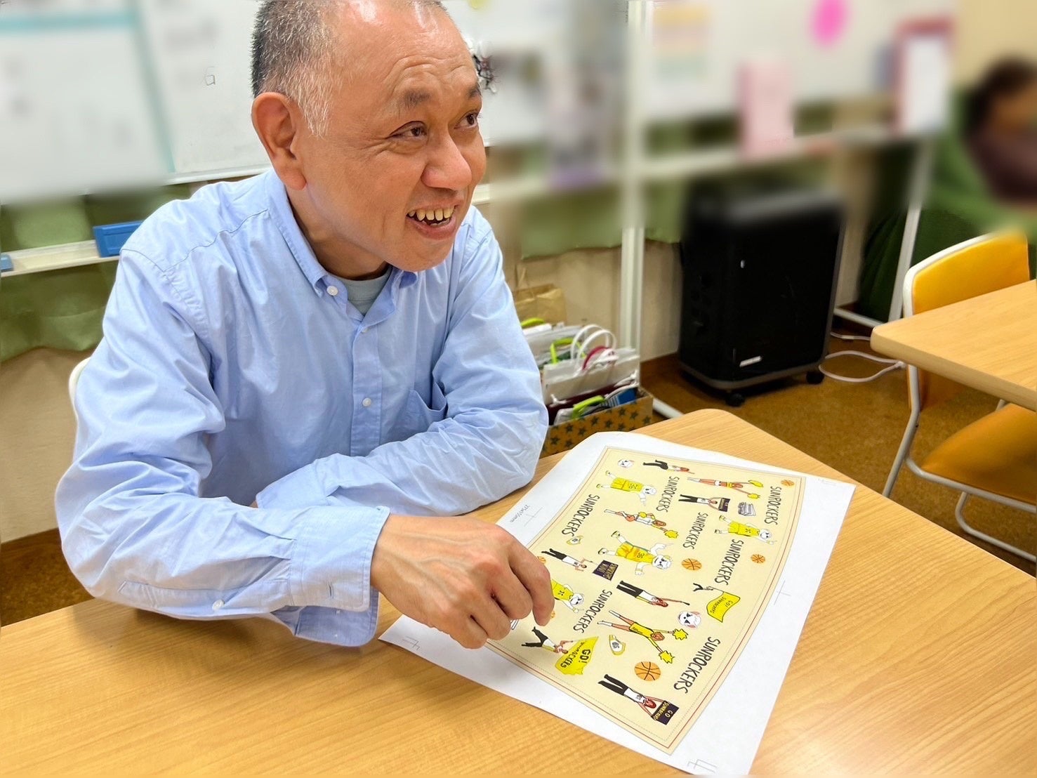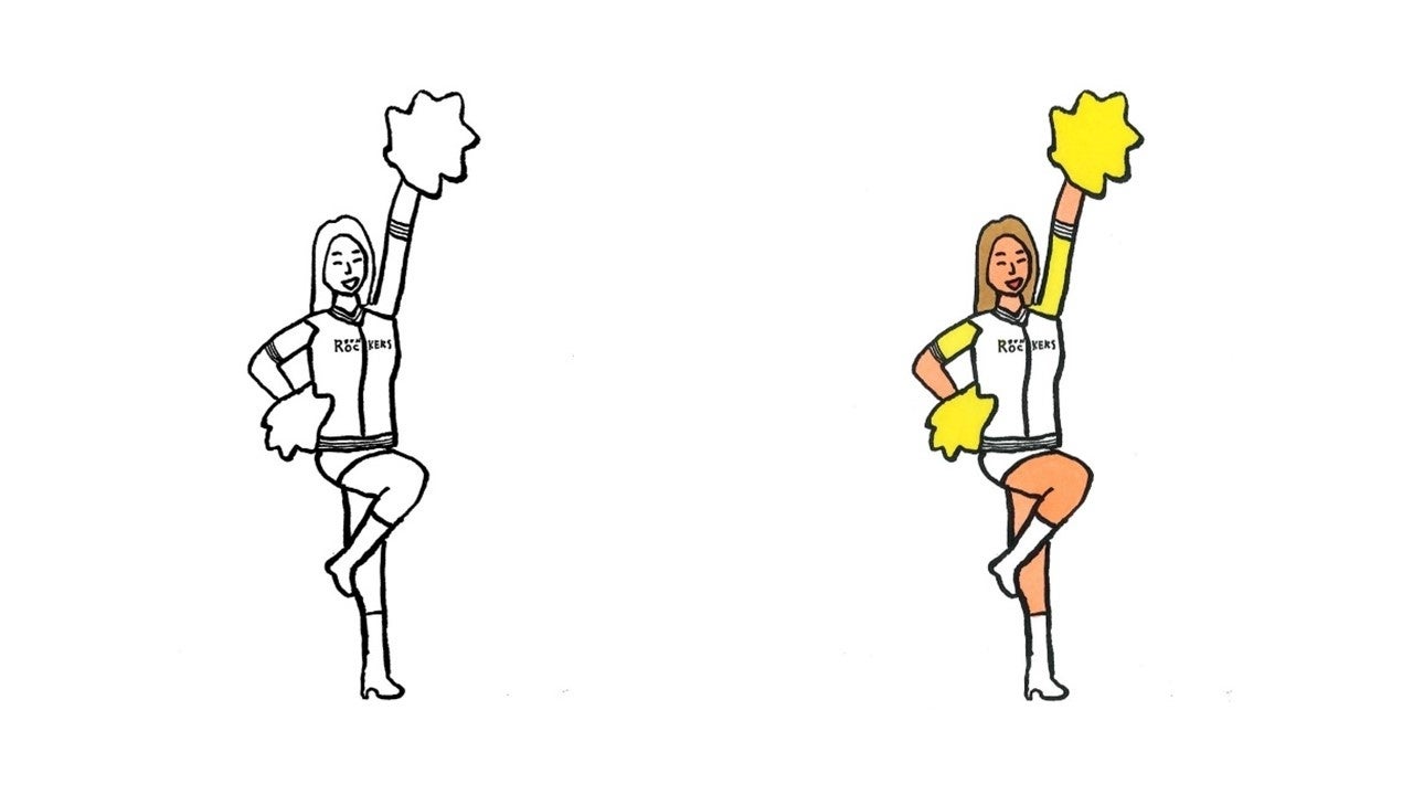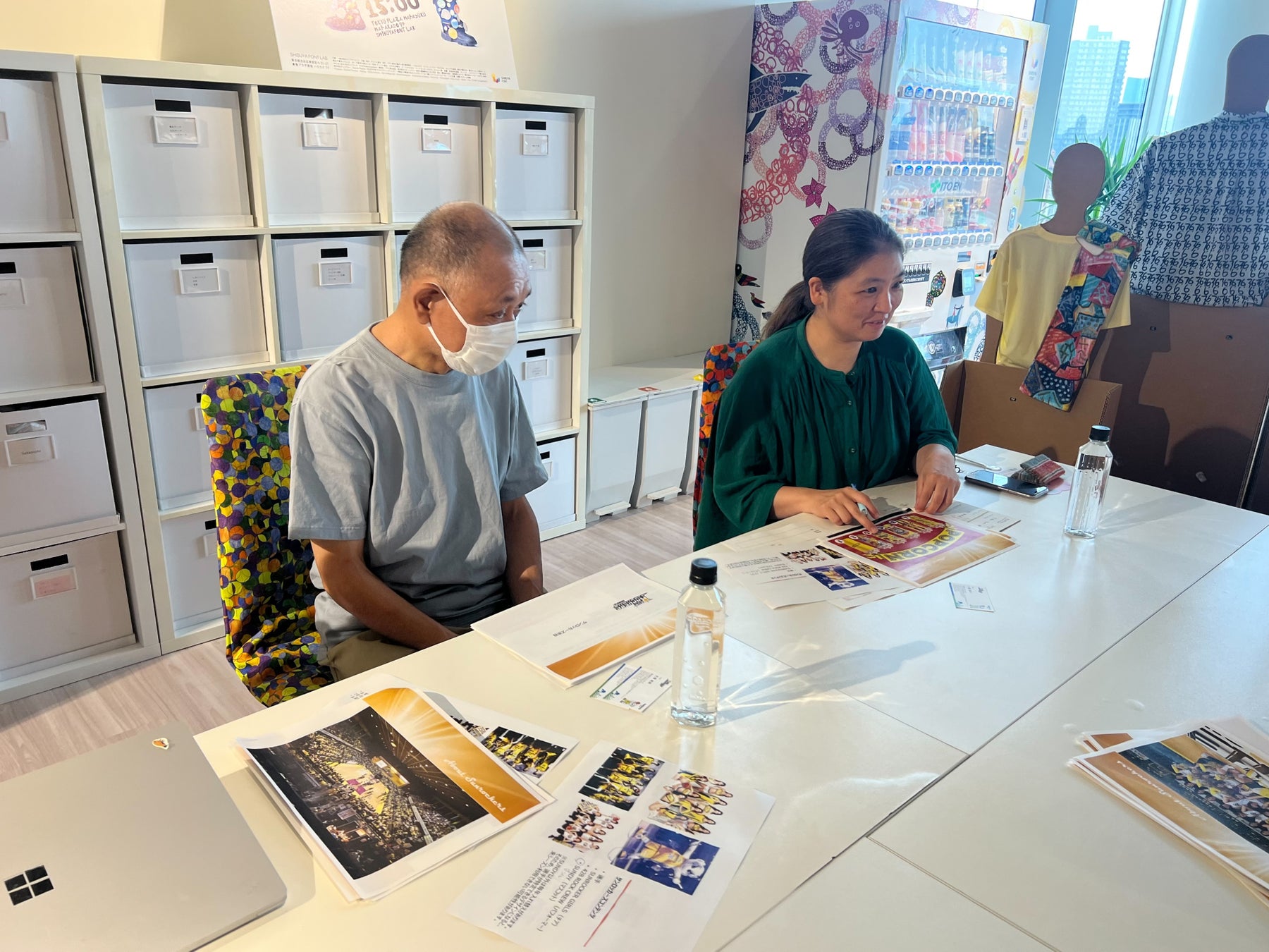 デザインイメージを決めるため、カラフルなイメージを希望していることをお伝えし、サンロッカーズのコンテンツ(選手・サンロッカーガールズ・428 ROCK CREW・サンディー)を1つ1つ紹介するところからスタートしました。 澤田さんは興味深く耳を傾けてくださり、資料を確認していました。