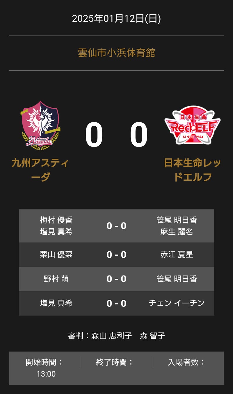 ノジマTリーグ 2024-2025 公式戦 1月12日開催 の「九州アスティーダ vs 日本生命レッドエルフ」のオーダーを発表いたします。