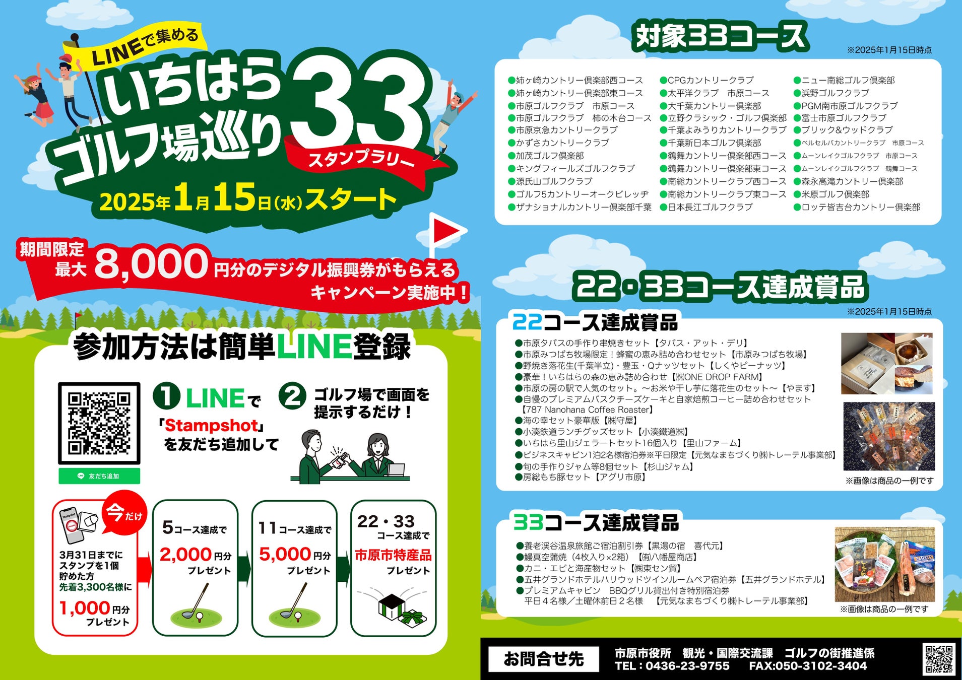 令和7年1月15日より、市原市でゴルフをプレーすることへの付加価値向上、ゴルフ場を起点とした市内経済への更なる波及効果の創出を目的として、紙スタンプカードをスマートフォンアプリLINEによる仕組みに移行し、達成コース数に応じた賞品を市内登録店舗で利用できるデジタル振興券等にリニューアルします。